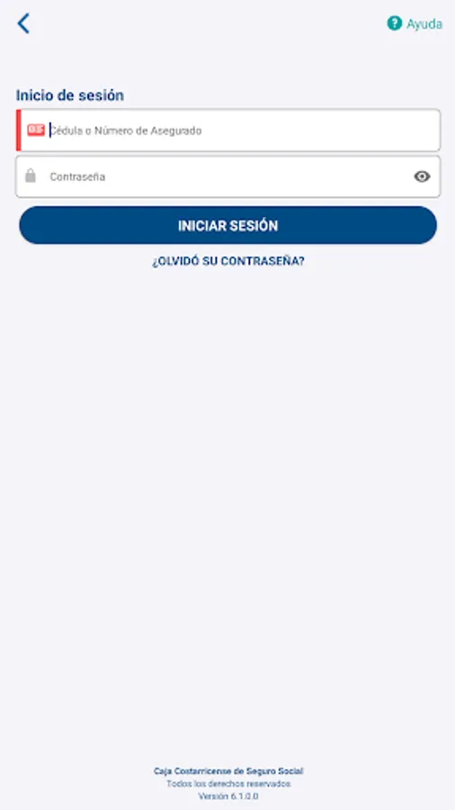 An account is required that can be created directly in the app through the "Register" button found on the initial screen or carry out the same process on the Online Appointment Request page available on the Institutional website (https: / /edus.ccss.sa.cr/eduscitasweb/). Those who already have an account to manage appointments on the web will be able to use that same account for the app.