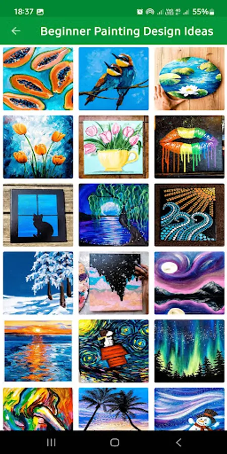 Introducing "Beginner Painting Design Ideas," an exciting application specially designed for aspiring artists who are new to the world of painting. This app is a valuable resource for beginners seeking inspiration and guidance in creating their own unique masterpieces using acrylic paints on canvas.