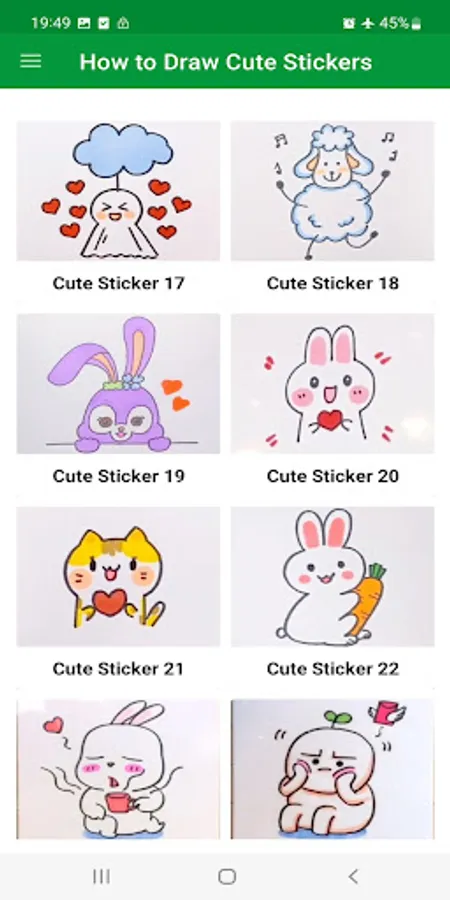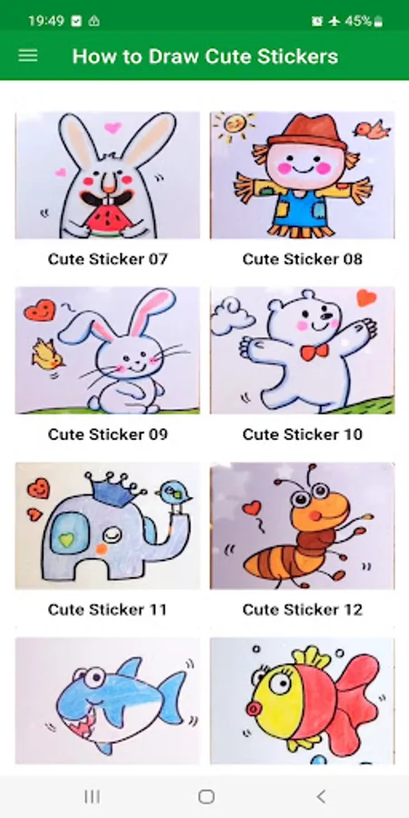 You’ve come to the right place! This app "Draw Cute Sticker" provide 60+ drawing instructions which can be your inpiration to make your own DIY sticker at home.