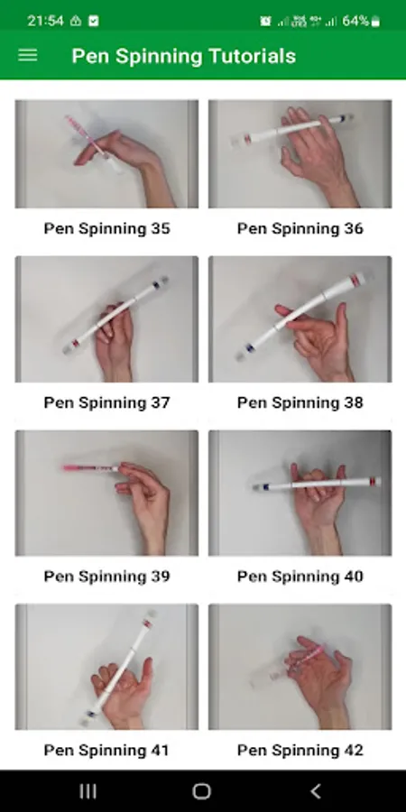 This app "Pen Spinning Tricks 7 Tutorials" included a number of tricks (50 Tutorials) that can be easily done by someone who has the will. Like it’s always been said, where there’s a will, there’s a way. Just by being here, you’ve already begun your journey into the world of pen spinning and amazing pen tricks!