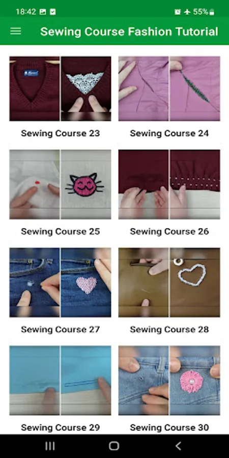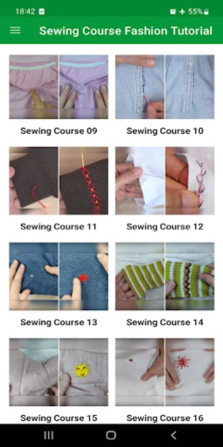 This app "Sewing Course Fashion" contain 30 tutorials of how to sew your own clothes at home using just your hand and convert your sewing into fashionable and beautiful result. So just download this app and start your DIY Sewing Project at home right now!