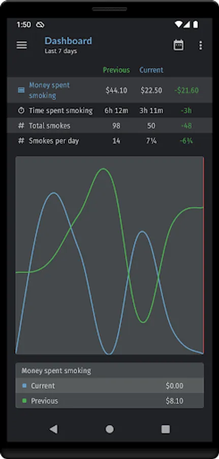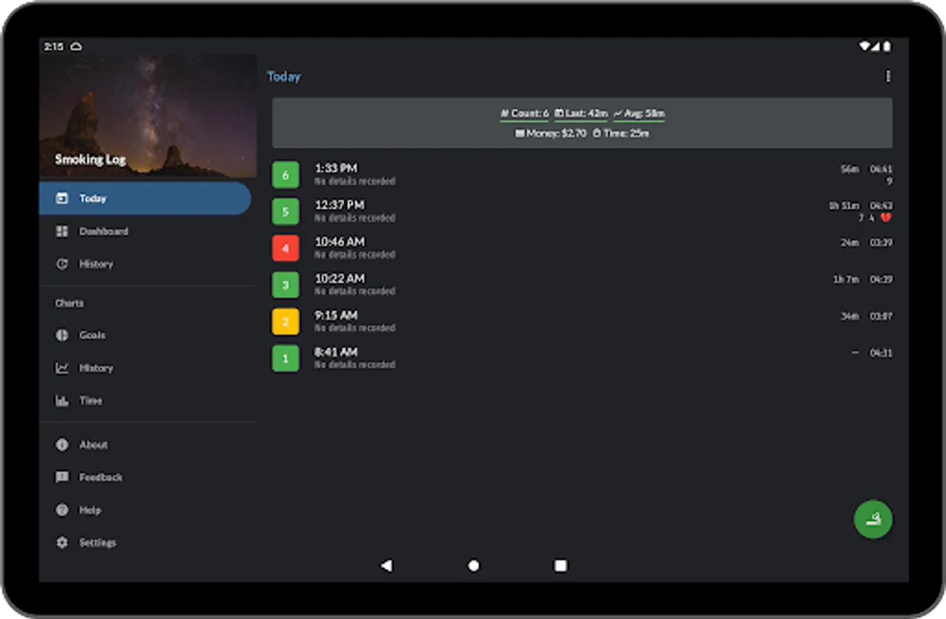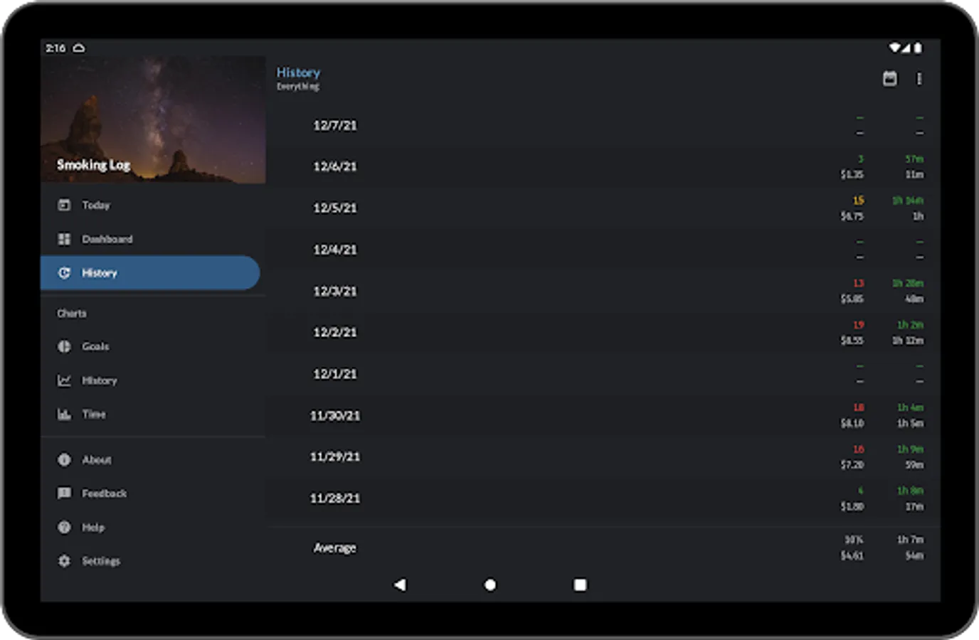 Quit smoking with Smoking Log by gradually reducing the number of cigarettes you smoke daily. Set goals and track your smoking habits easily. View history to track your smoking habits and progress over time.
