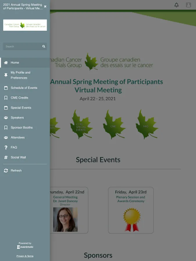 The Canadian Cancer Trials Group Annual Spring Meeting of Participants represents a major gathering of the Canadian oncology community where trials that cover the spectrum of cancer treatment are designed and reviewed. Traditionally, the meeting includes discussions of trials that are in development, under conduct or have results to be shared.