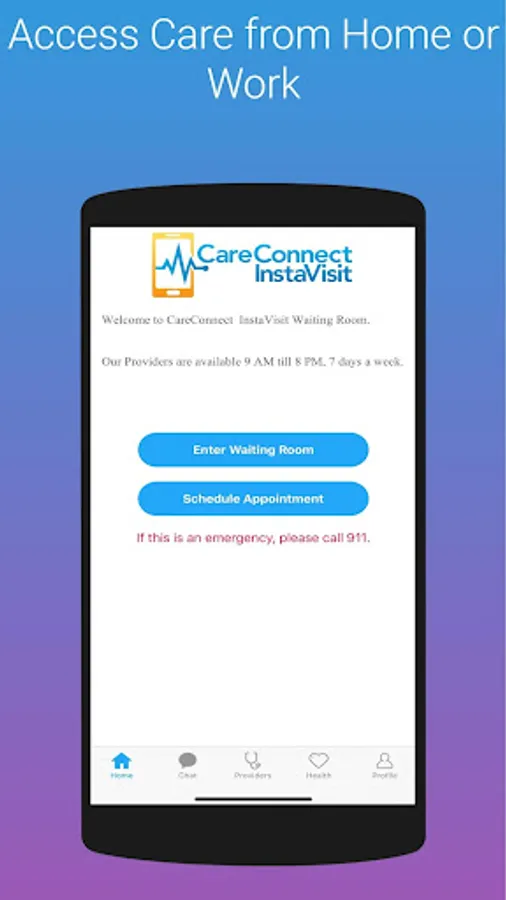 CareConnect InstaVisit is a safe, secure and simple way to get online diagnosis and treatment through video visit using your mobile device. Prescriptions if needed are sent directly to pharmacy of your choice. Get care without leaving home or work. CareConnect InstaVisit is available 9 AM till 8 PM, 7 days a week.
