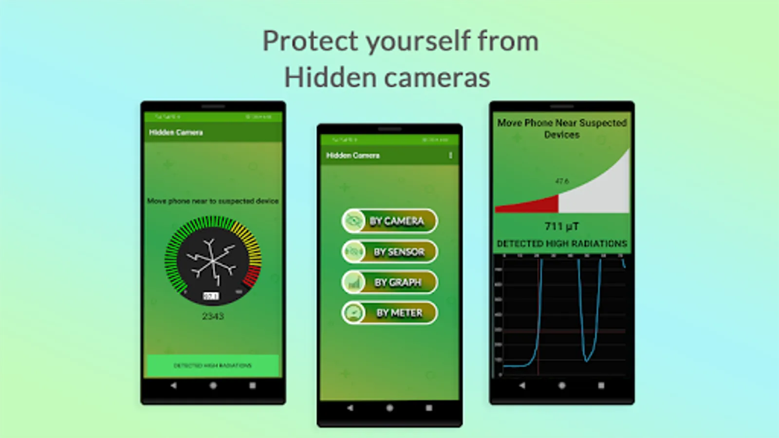 Hidden camera detector in hotel app is more helpful app for detecting hidden cameras in public places, hotels room, washrooms, changing rooms, shopping malls and offices. Hidden camera detector radiation meter app is developed to protect your personal life from bad peoples.