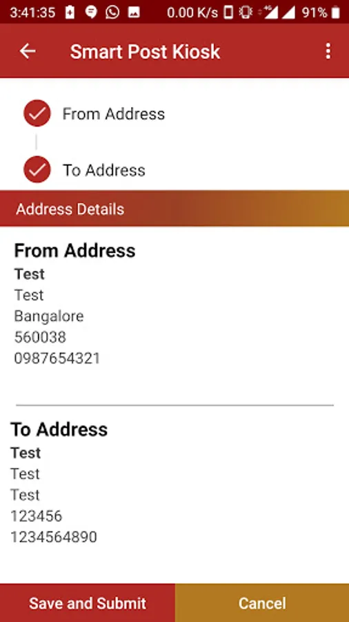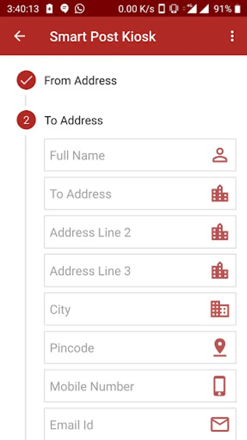• In the next screen enter the address and contact details. Please make sure that the details entered match with the details on the article to be posted.