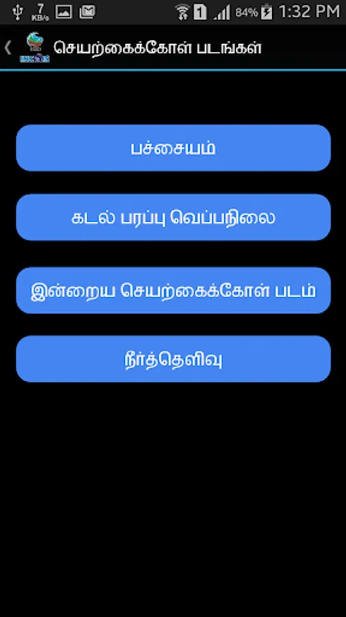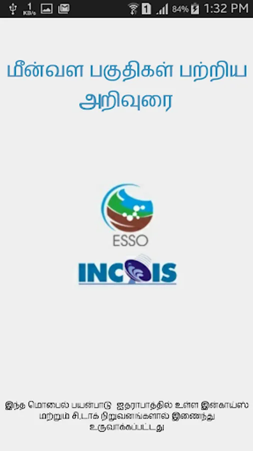 This app can be used for disseminating Potential Fishing Zone(PFZ) advisories to fishermen living in coastal areas of India in Tamil language. It also provides daily advisories to fisher folk about presence of chlorophyll, sea temperature, water clarity and help them easily locate areas of abundant fish in the ocean while saving on both fuel and time used to search for the same.