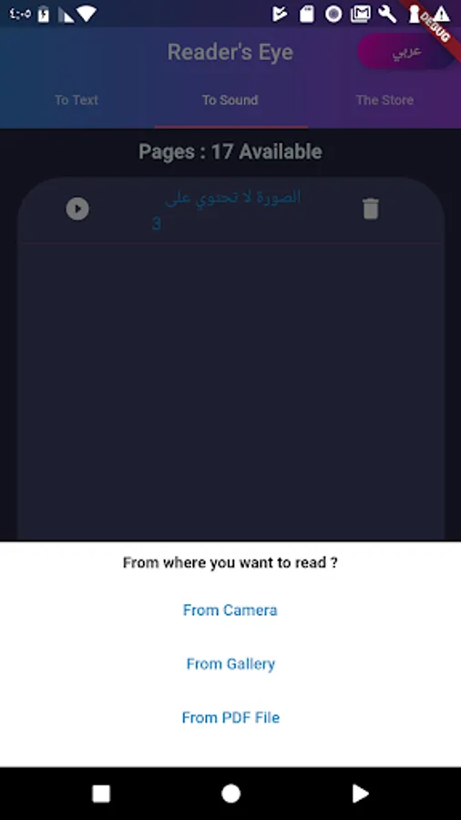 The Reader's Eye application converts images to audio files or text files as needed. You can use TalkBack (Android speaker) to read the text file.