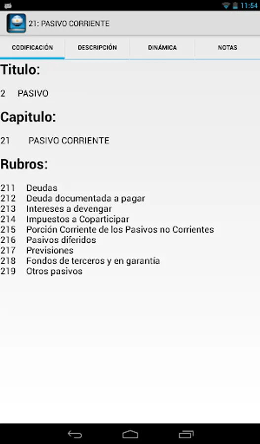 Application that allows to have in your pocket official CATALOG OF ACCOUNTS ONLY for Argentina.