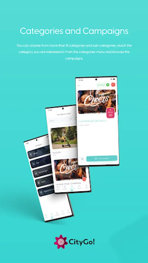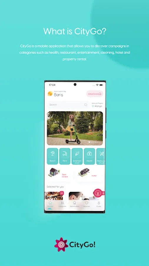 CityGo! is a mobile application that allows you to discover campaigns in categories such as health, restaurant, entertainment, cleaning, hotel and property rental. CityGo for your holiday needs such as beach, restaurant, entertainment, car rental! Experience a unique holiday with At the same time, you can rent a hotel or rent your property whenever you want.