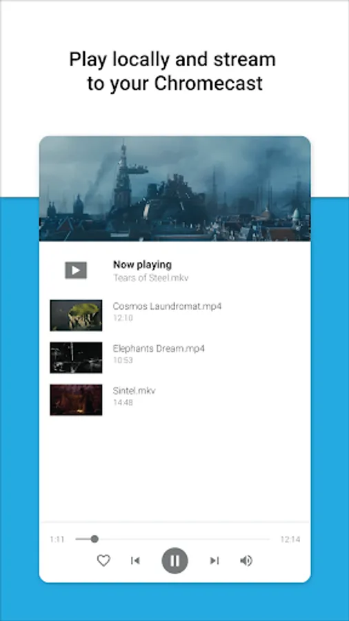 - Playback local videos, music, and images locally and on your Cast device