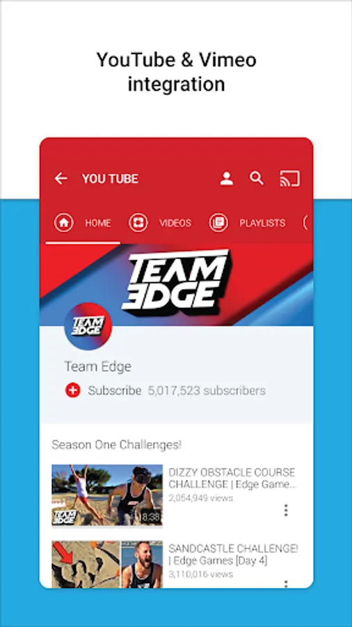 - YouTube and Vimeo integration with account support