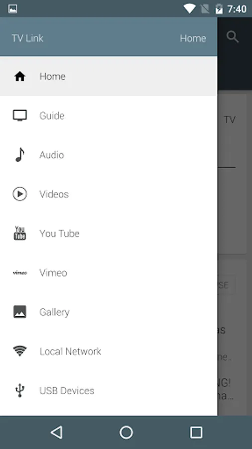 TV Link app on your Smart TV / Bluray player before connecting with the android client.