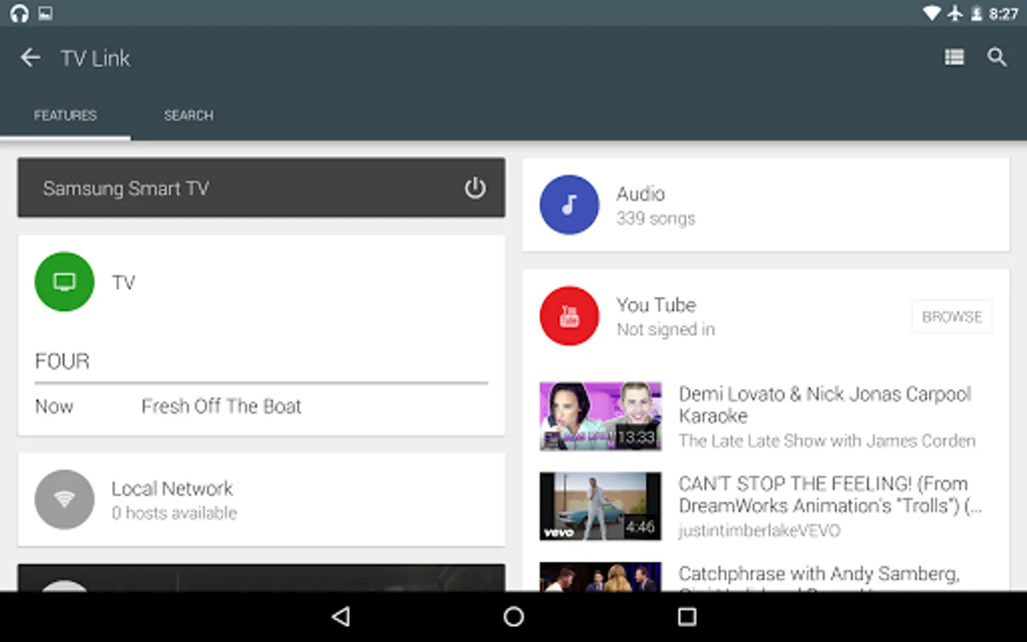 TV Link allows you to control your Samsung Smart TV / Smart Bluray player from your smartphone or tablet by