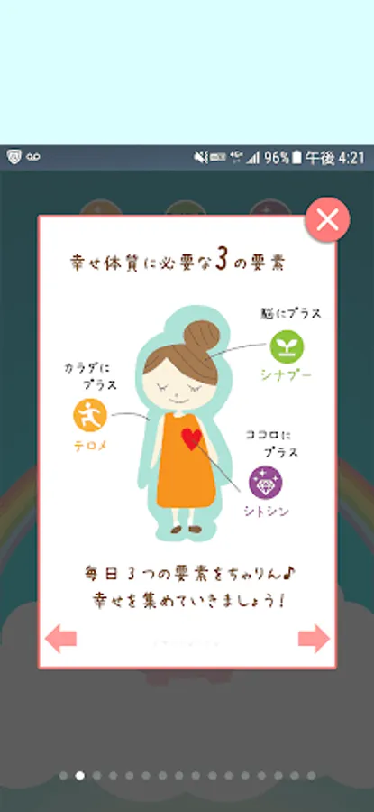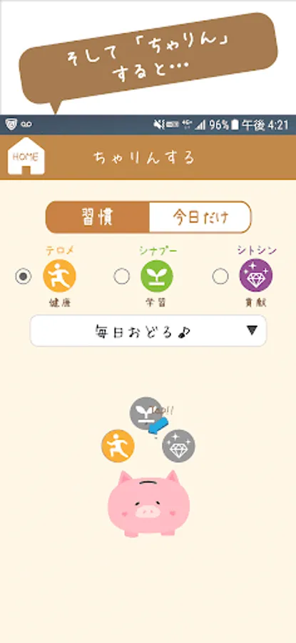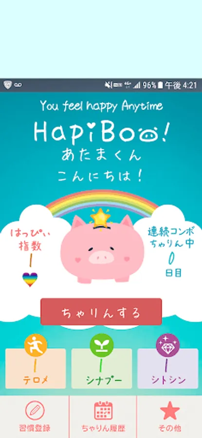お気に入りの習慣を楽しく実行しながら、こころとからだの幸せ習慣をサポートするアプリです。
