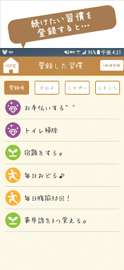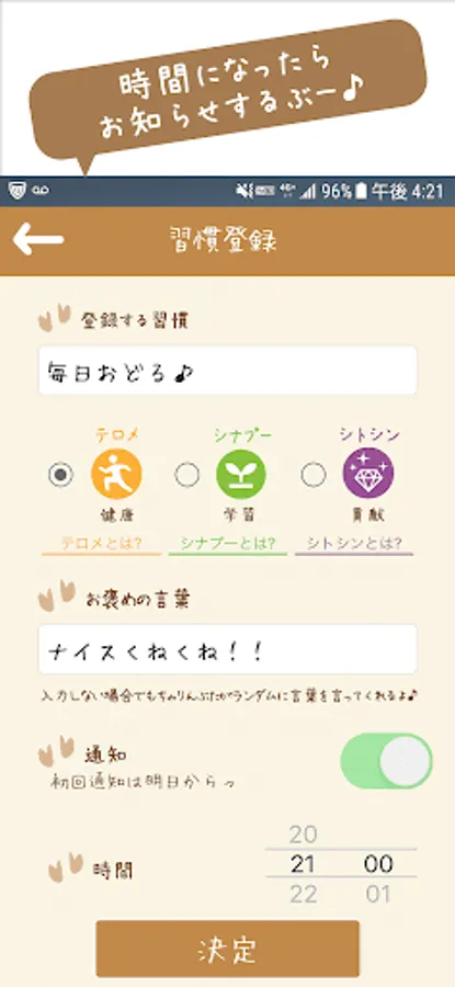 (お褒めの言葉は自分で登録することもできるのでお気に入りの言葉でモリベーションさらにUP!