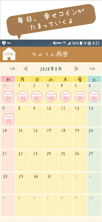 ・1週間連続、幸せコインをGETできたらボーナスポイント!