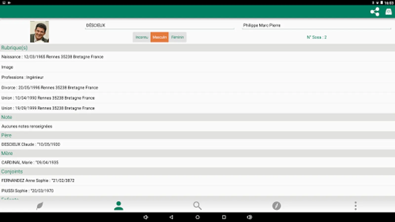 Généatique is an application to take your genealogy on your tablet or smartphone. Convenient to walk through the family tree, visualize and update the genealogy of the family. Works without internet connection. This is only necessary for the implementation of genealogy on the mobile. Then you look at the family tree, the index name / first name ... without a network connection! If you have an Internet connection, you can update your genealogy from servers Geneatique.net