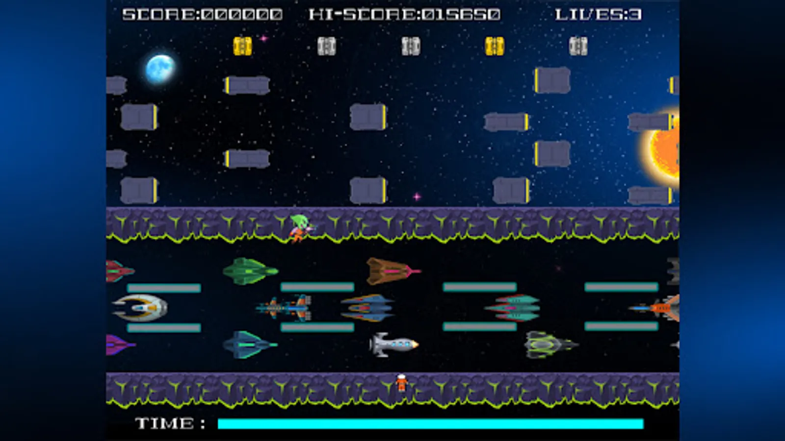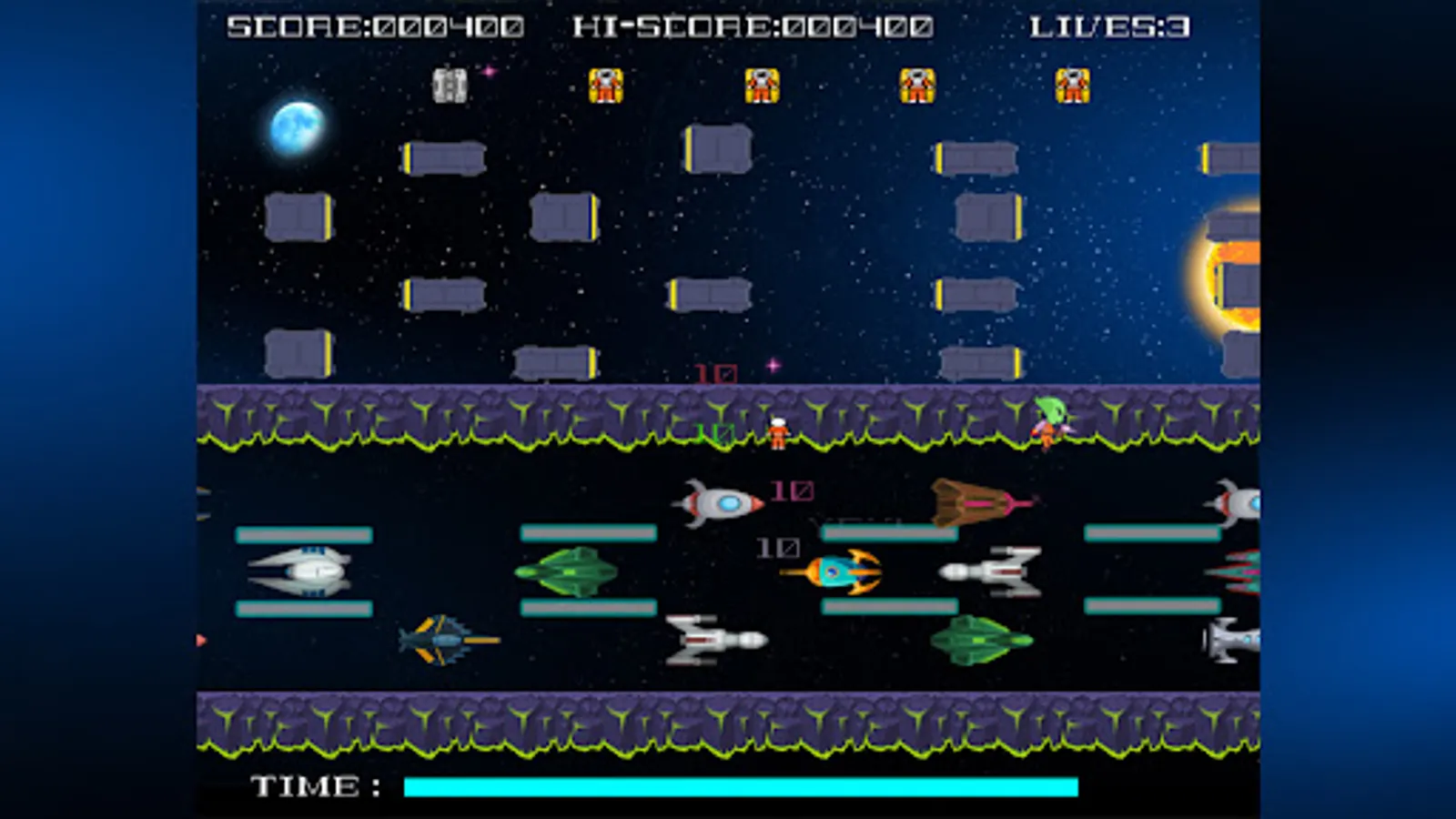 Score based game and a spinoff from the 80s arcade attraction. It is dangerous out there, space is filled with angry drivers. Make the astronaut cross the platform to the taxies through the emptiness and watch out for the space traffic.