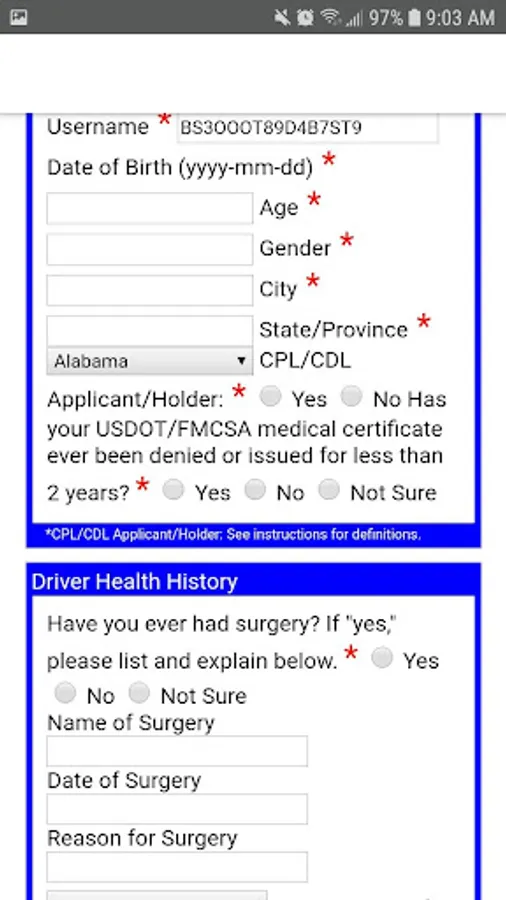 This app will help users streamline the process on their way to obtaining a CDL Licence. It will allow the user to create an account, fill out questions, have their results stored securely in a database, and have an online website to print out the forms required.