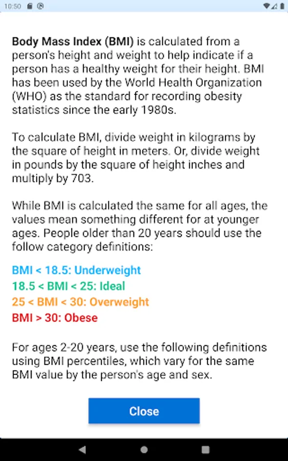 Unlock a healthier you with our state-of-the-art and user-friendly BMI Calculator app! Start taking care of your well-being by easily calculating your Body Mass Index (BMI) and tracking your progress. Whether you're embarking on a fitness journey or striving for a balanced lifestyle, our app provides you with a comprehensive tool to monitor and understand your BMI.