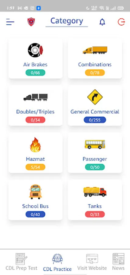 CDL Prep App helps you to prepare for your Commercial Driver’s License with FREE CDL practice tests and CDL Prep Tests 2022. Practice tests for all the major categories of CDL exam are available. Questions on our CDL practice tests and CDL prep tests are equivalent to those on the real Commercial Driver's License exam.