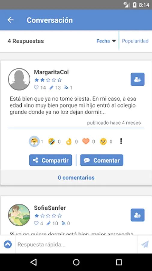 The app gives you Heart Mamás a space for you to have conversations with other moms where you can feel relaxed and be honest. In the other networks you can put the picture of how nice it came out concert of your daughter, but in heart Mamás where you get advice on how to make that perfect costume and share all the tears that involved the effort to make it a success. This is your community and up to you to ask questions, share solutions, and if you wrote someone else caused you some emotion then you tell using emoji (we all like to know if you write someone else likes). Also, if you believe that a publication should not be in Heart of Mamás then you can give click to the three points, and then the button "Report Troll".