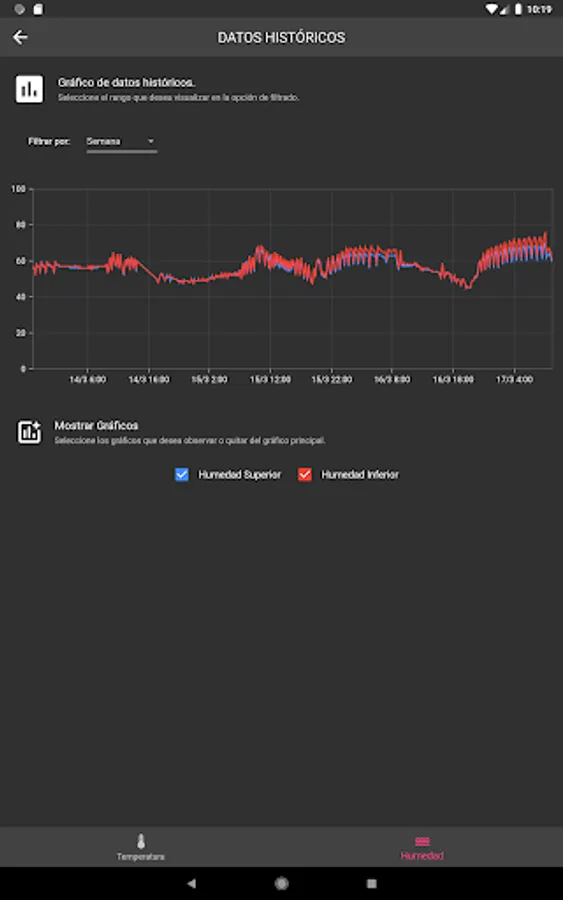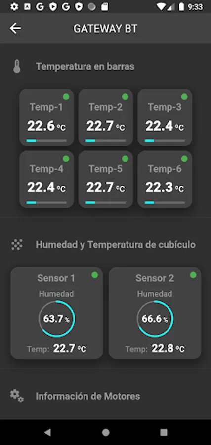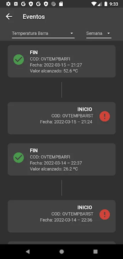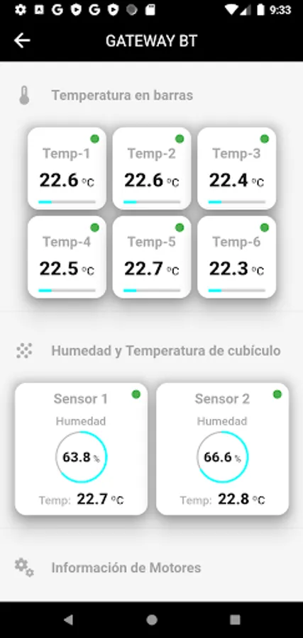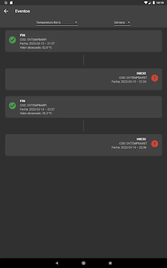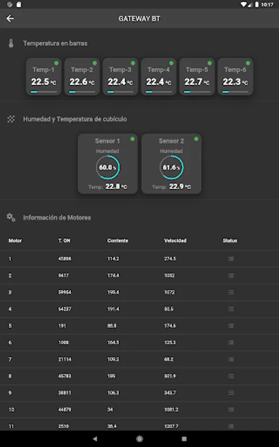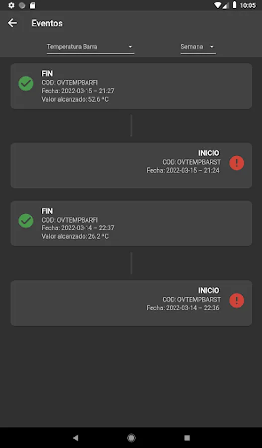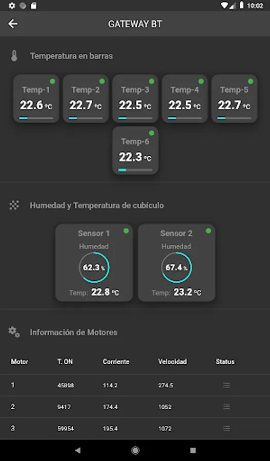 Through this application, the user can observe in real time the data coming from temperature and humidity sensors located in electrical panels and cells. You can also check the historical behavior of each of the sensors, either by day, by week or by a certain date range.