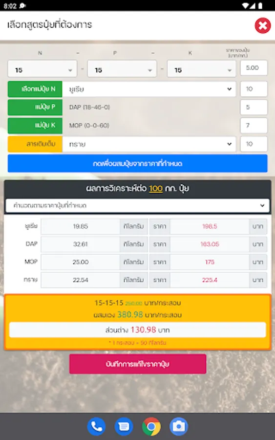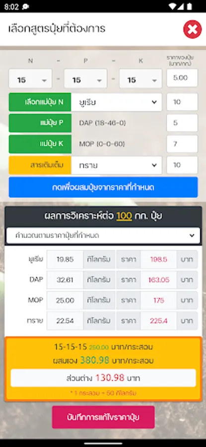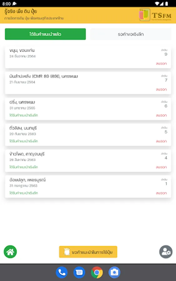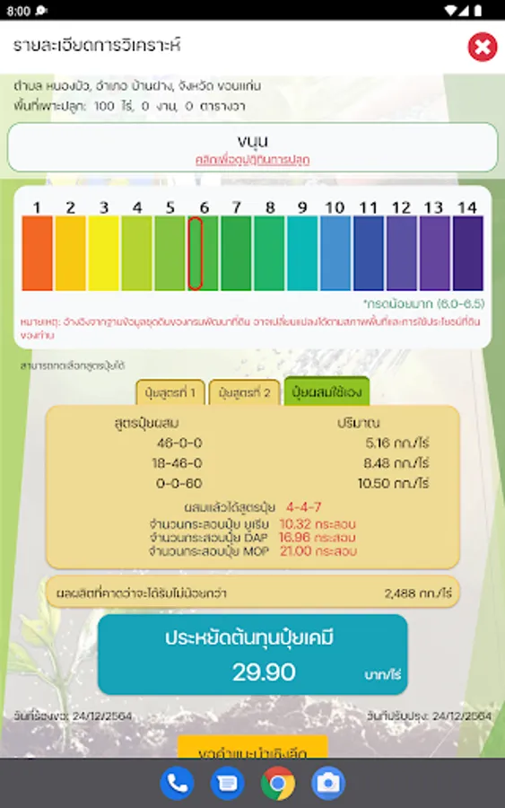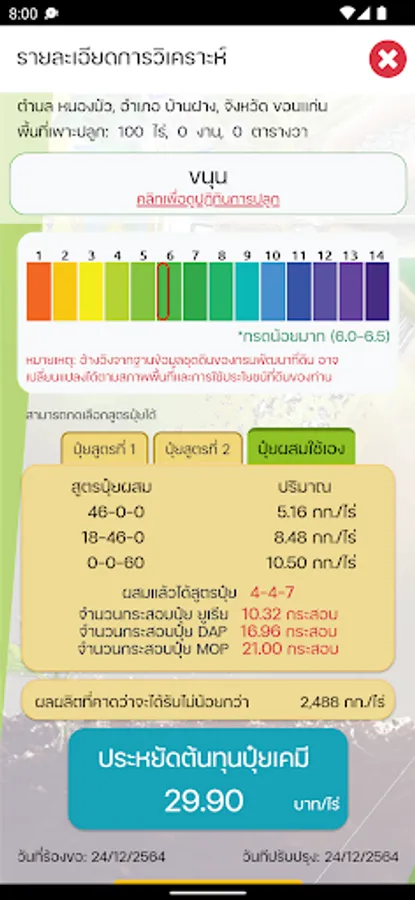 Soil, water, and economic crops management program of Thailand Thai Soil Fertility Management (TSFM) is used as a manual for managing the use of chemical fertilizers. Suitable organic fertilizer according to soil series