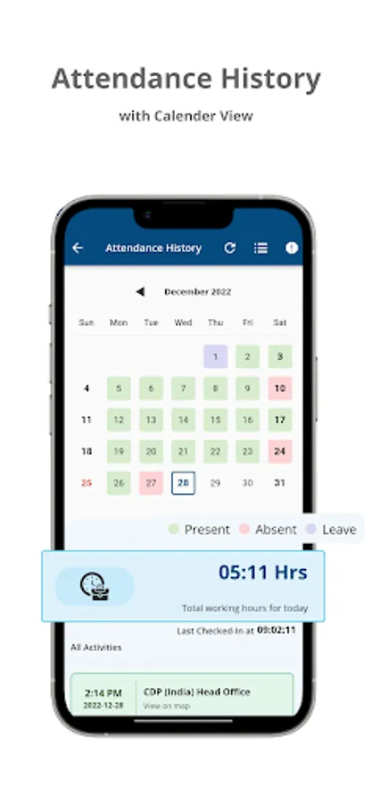 The advance reporting feature in app gives you a glimpse of your working hours and late marks so that you always stay informed.