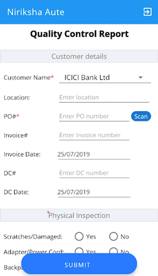 This app is used to generate quality control report by simply filling all the required details. There is provision of QR code scan in order to auto-populate certain fields to reduce time and effort. This app helps to increase speed in generation of the reports.