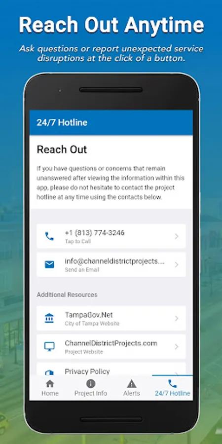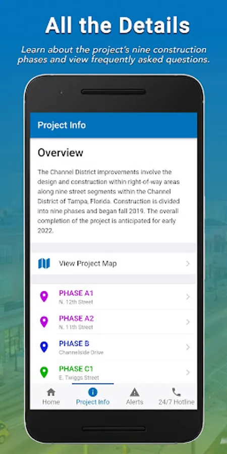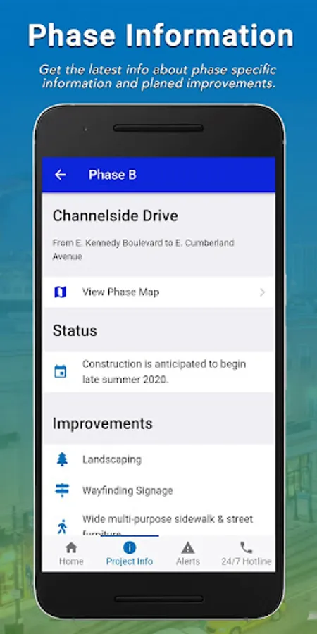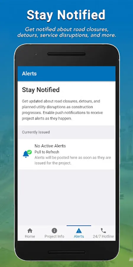 * Stay updated about road closures, detours, and utility disruptions before they happen with push notifications.