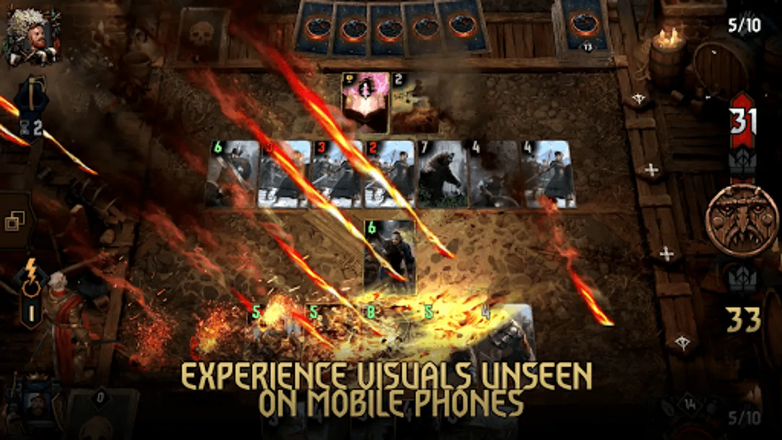 STUNNING, ALL ACROSS THE BOARD — Beautiful, hand-drawn art and mesmerizing visual effects breathe life into every card, battle and battlefield, making GWENT fun to play and every duel a joy to watch.