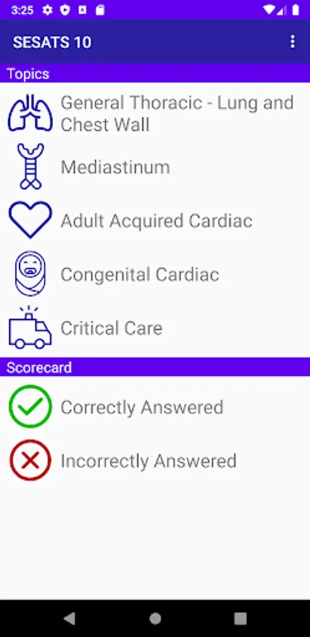 This is the THIRD in a series of apps developed to review previous SESATS examination questions. The first was CardioThoracic Study Questions, published in October, 2011, and represented the SESATS VIII question set. The current offering represents the SESATS X question set. SESATS 13 is the most current version and is the version used for maintenance of certification as of the date of this writing. Therefore, although the current question set is a resource for the studying Thoracic Surgeon, some of its content may be outdated and may not represent the current state of the art and science of Thoracic Surgery.