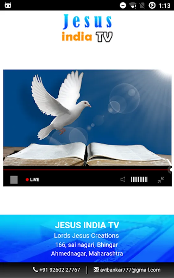 We are a local cable channel setup in Maharashtra. We do live prayer meetings, community programs, live church services and so on. We are planning to reach millions of people through this app - Jesus India tv. Please download this app and stay connected with one of the popular christian channels in the country.