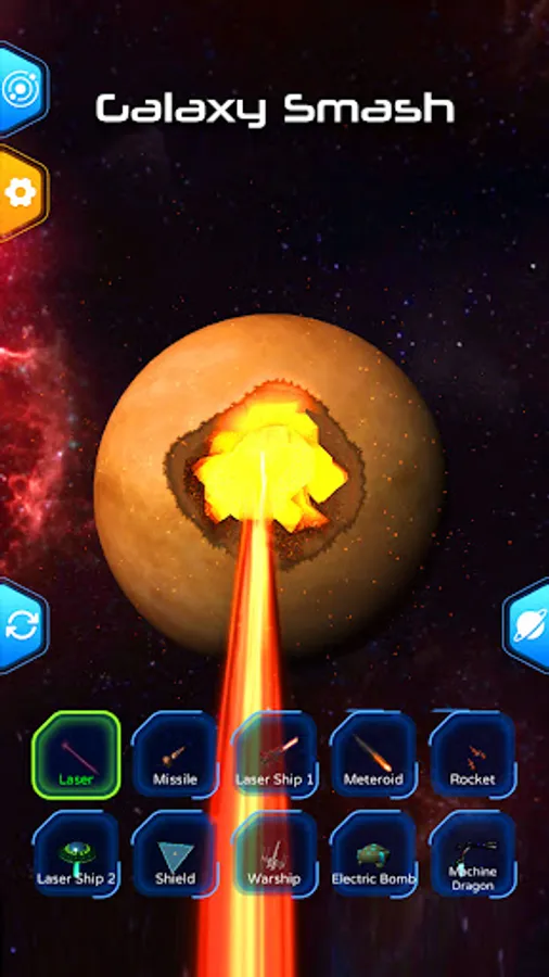 Game provide many weapons: missiles, bombs, meteors, asteroids, energy beam, spaceships, war machines, to allow you destroy a planet.