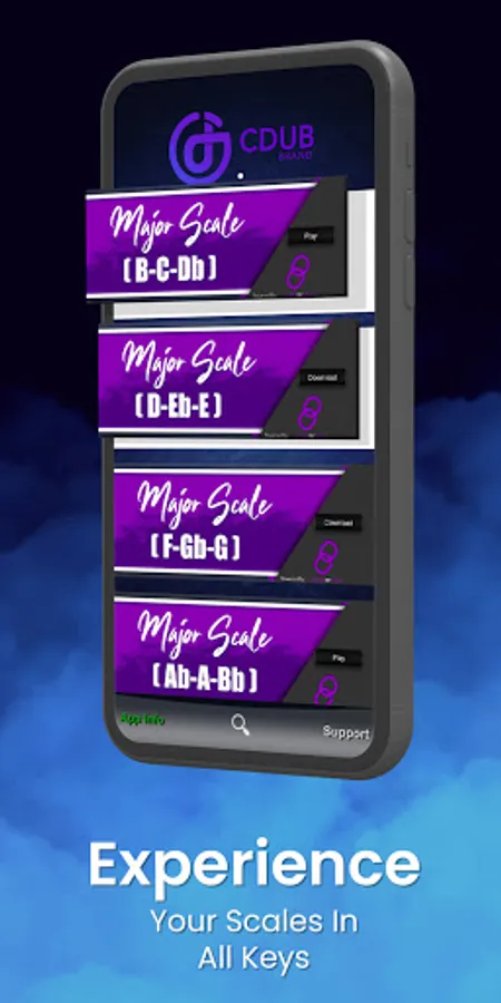 With Scale Junkie, you can have a fun immersive experience while practicing your scales to music specifically created to keep you engaged, and interested the whole entire time! You're not just practicing to a metronome any more, you now have a full band playing along with you! The scales you practice are now a melody to a song, and the Scale Junkie band accompanies you, making it a fun and enjoyable experience!