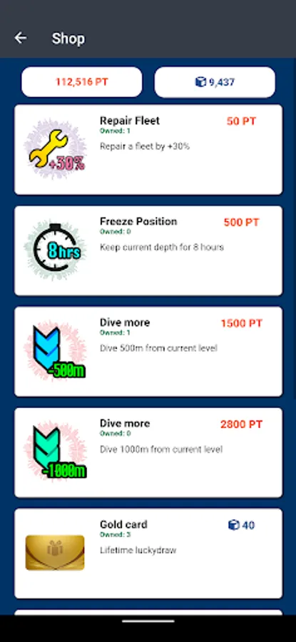 For those who want even more benefits, there's the option to purchase in-app purchase diving blocks. With diving blocks, you can buy exclusive items in the shop, such as the gold card that gives you a lifetime luckydraw ticket in the game. And with a monthly pass subscription, you can become a PRO player and enjoy double the benefits, such as double points and extra items collected.