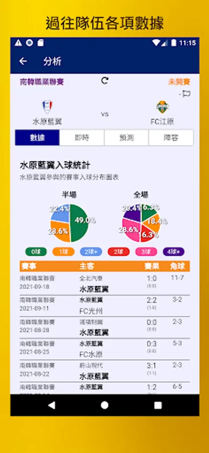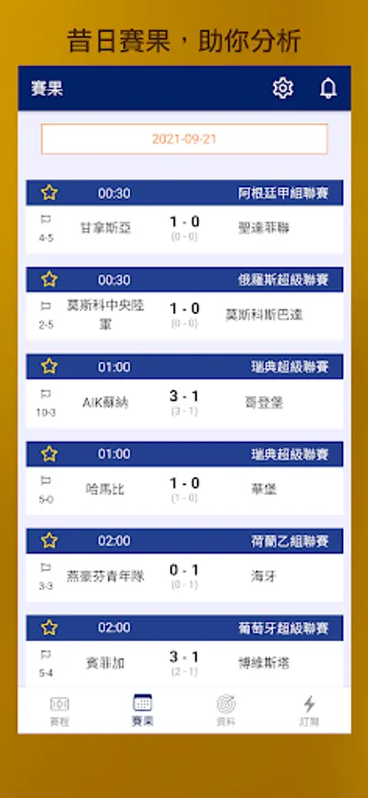Data Football uses the data and results of over 20,000 matches in the past ten years to analyze on-the-spot data from multiple angles. This software mainly provides the latest football match information, through the match data for mechanical learning and analysis of the trend, to help you master and analyze each subsequent match.
