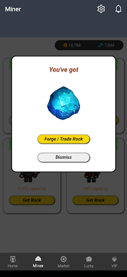 The mining capacity can be increased by hiring Miners. More points can be collected with more capacity in each time. Moreover, each miner can explore and collect metal rocks.