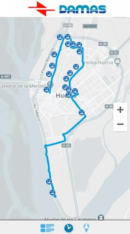 Routes and Schedules of the Alantic Copper bus service with real-time location of the buses circulating