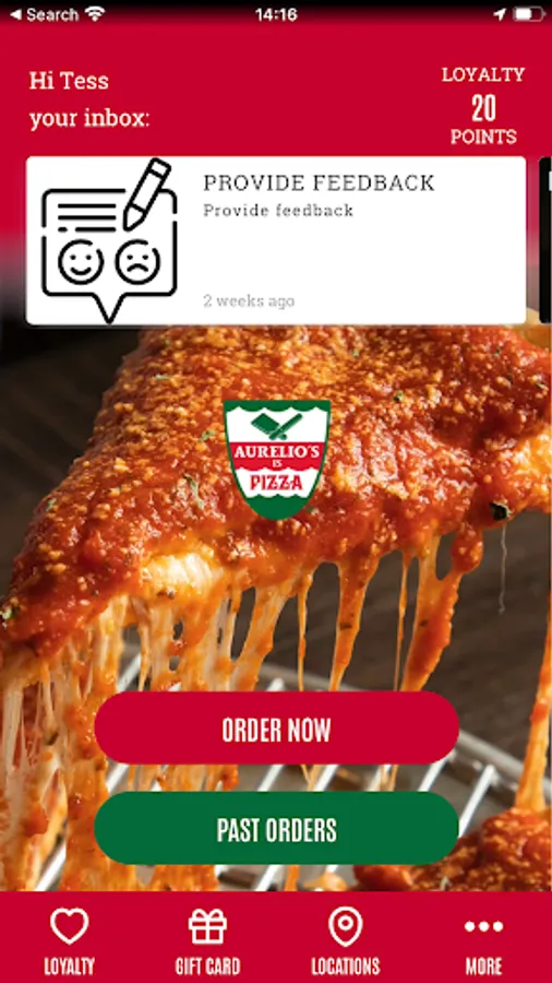 o Get extra points for referring Aurelio's Pizza to your friends!