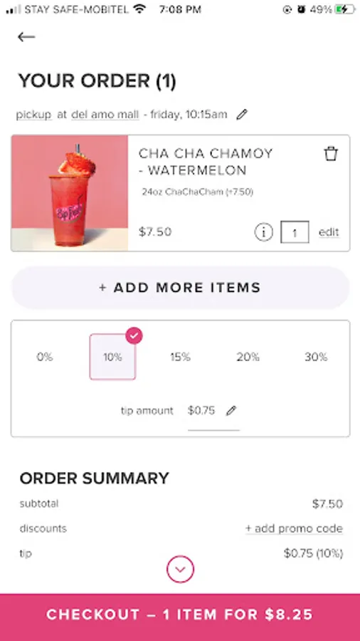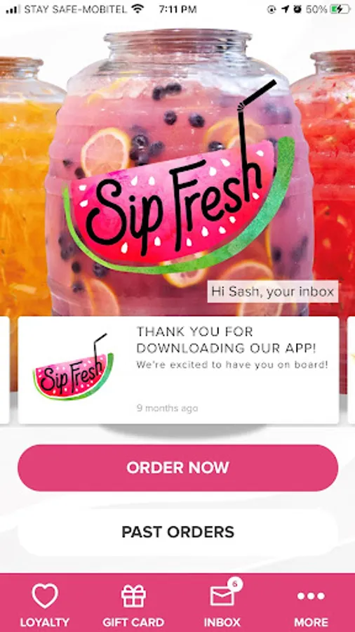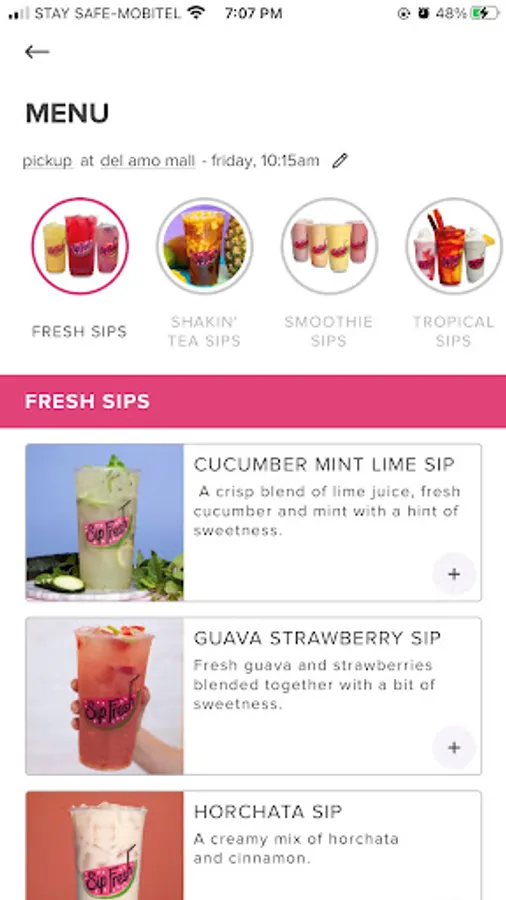 The Sip Fresh app is an easy way to order ahead for pickup. Join Sip Fresh Rewards to earn points on every dollar spent and enjoy exclusive offers.
