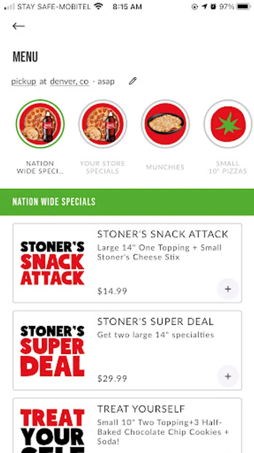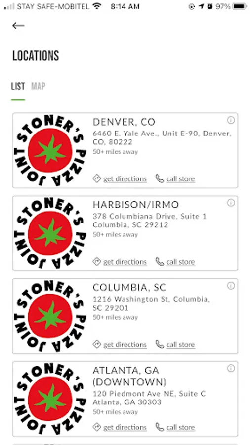 You never know when you need to satisfy a craving! No matter where you are, you can use the Store Locator feature to get directions, call in, or view your distance from the nearest Stoner's Pizza Joint.