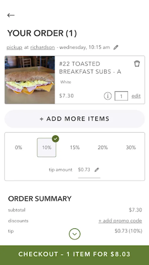 Customize any tasty sub or salad with pickup, curbside and delivery options available. Ordering is easy with your recent orders easily accessible from the dashboard. Skip the line. Order ahead of time!