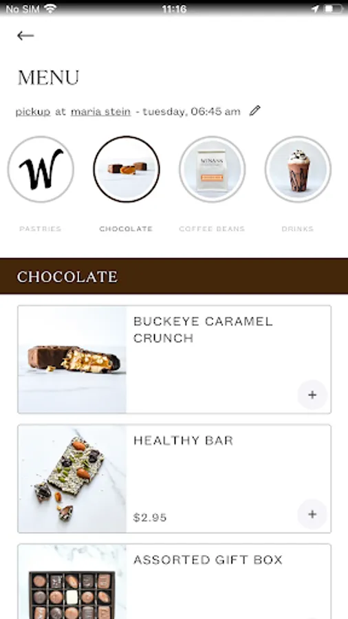 Order Winans drinks, coffee beans, and chocolate from the app and pick them up at your local Winans store.