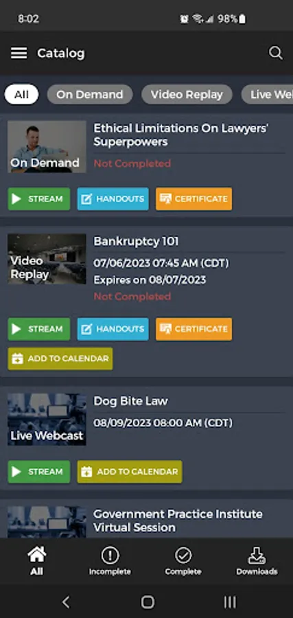 ● Attend a Live Webcast, on demand seminar, webinar, video, or any other delivery method available in the catalog