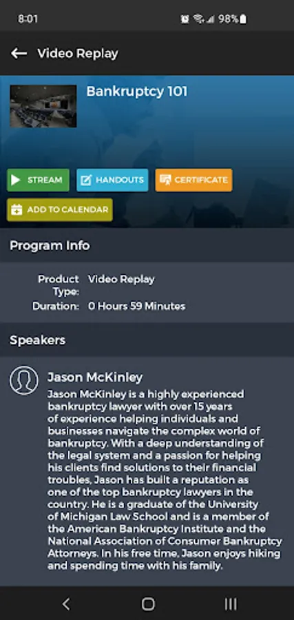 Customers can also view handout materials, perform evaluations and quizzes, and obtain certificates of completion without leaving the App.