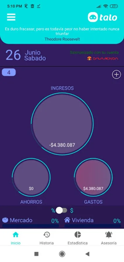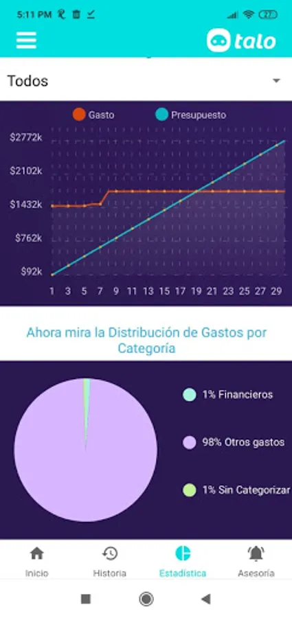 The budget is the most important thing if you are looking to have healthy personal finances, there is no other secret (simple as that), however, we know that it is much easier said than done, a well-managed budget requires in most cases that write down your income and expenses daily with the discipline of a Samurai, but calm, Talo puts control of your personal finances in the palm of your hand, with an easy and intuitive tool that allows you to know how your expenses and income evolve as you As the month progresses, you can even assign categories and keep track of them so you never stop spending on what really matters.