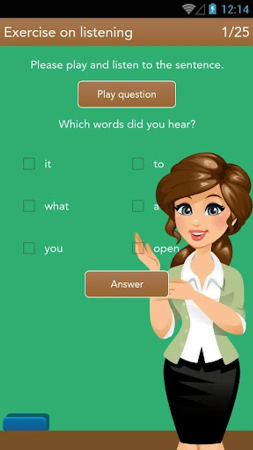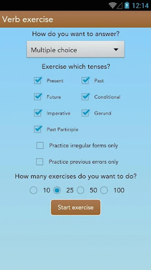 * Highly customizable exercises on all of the above, with a fun awards system which makes practicing fun, with separate awards for the vocabulary, verbs, grammar, listening and speaking exercises.